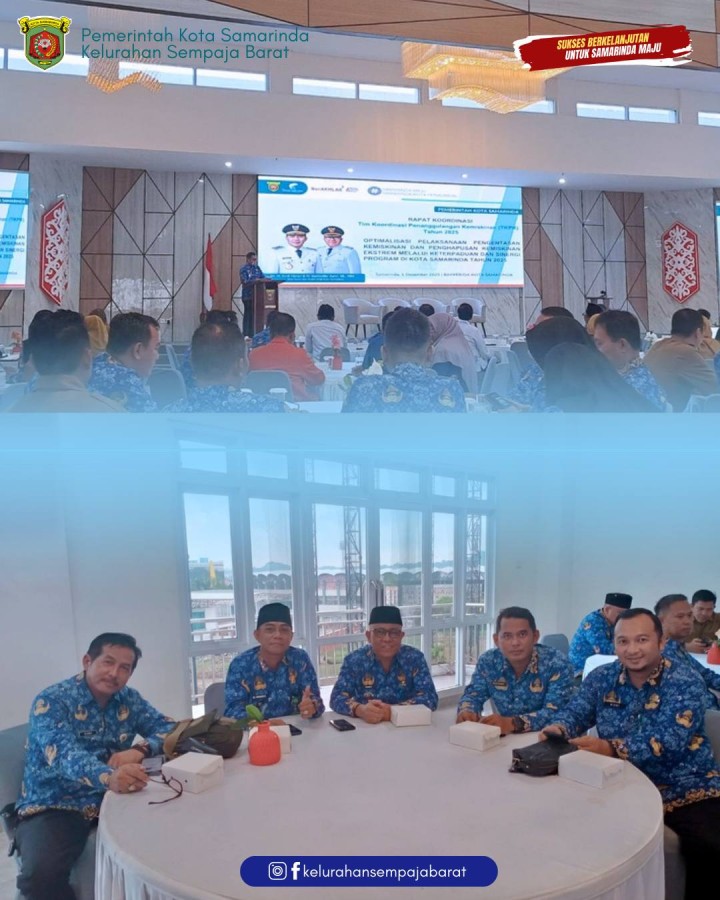 Giat, Senin 01 Desember 2025 1. Menghadiri Rapat Tim Koordinasi Penanggulangan Kemiskinan Kota Samarinda di Ballroom Arutala Lt 4 Bapperida Kota Samarinda dihadiri Lurah. 2. Menghadiri Rapat Koordinasi di Ruang UKS Kecamatan Samarinda Utara dihadiri Kasi Kesra. 3. Menghadiri Bimtek Workshop Fotografi: Optimalisasi Dokumentasi Kegiatan Kelurahan se-Kecamatan Samarinda Utara di Aula Kantor Kecamatan Samarinda Utara dihadiri Seklur dan Staf.